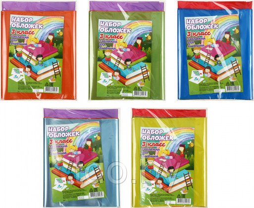 Набор обложек для 3-го класса + обложка для дневника, состоит из красочных и плотных обложек разного цвета для учебников третьего класса.