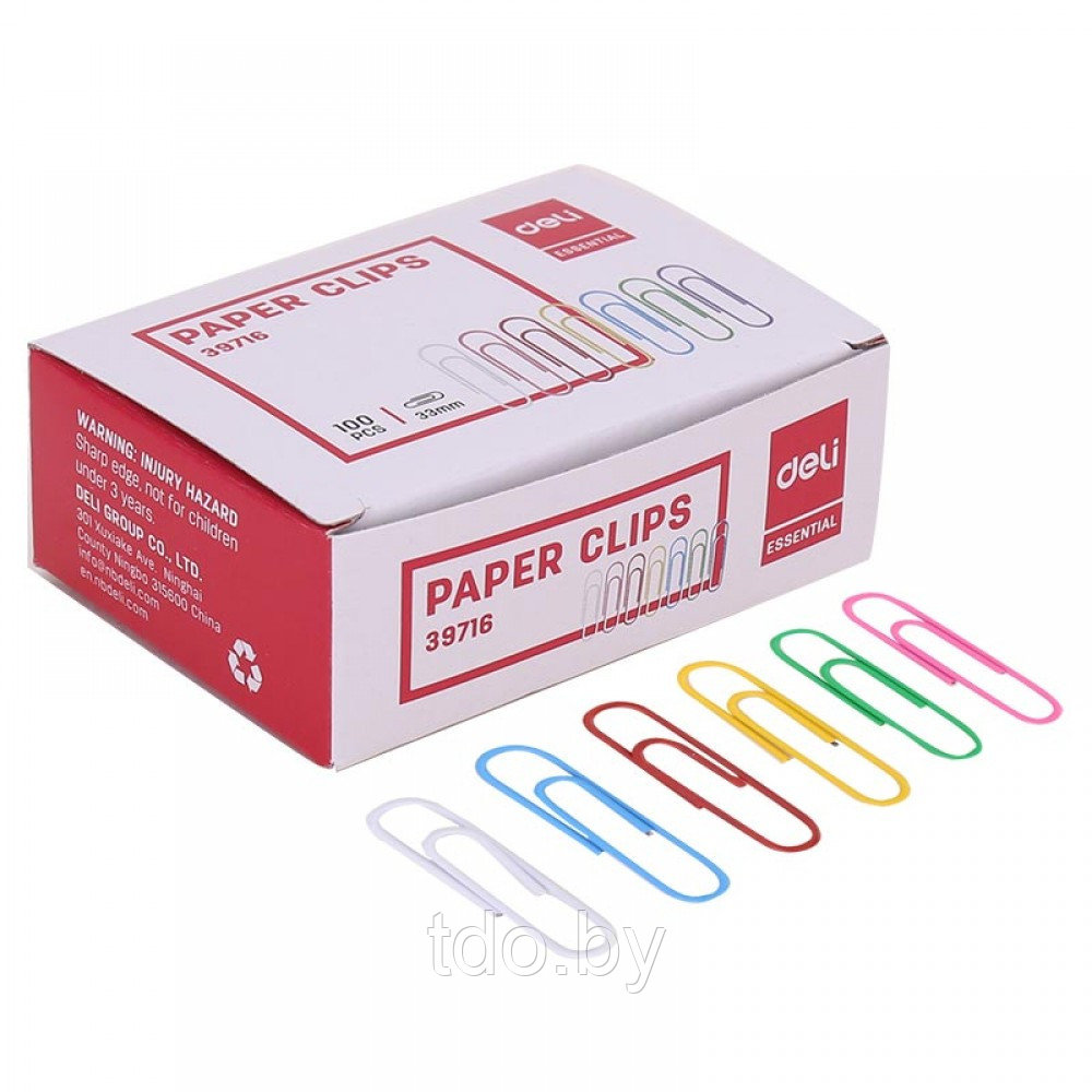 Скрепки Deli, 33мм, никелированные, овальные, 100шт/уп, цветные
