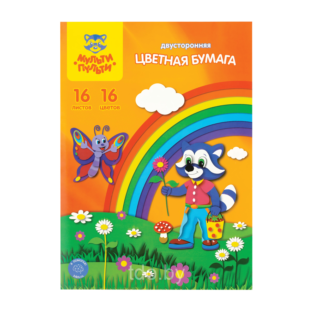 Цветная бумага офсетная А4, Мульти-Пульти, двустор., 16л., 16цв., в папке, "Приключения Енота"