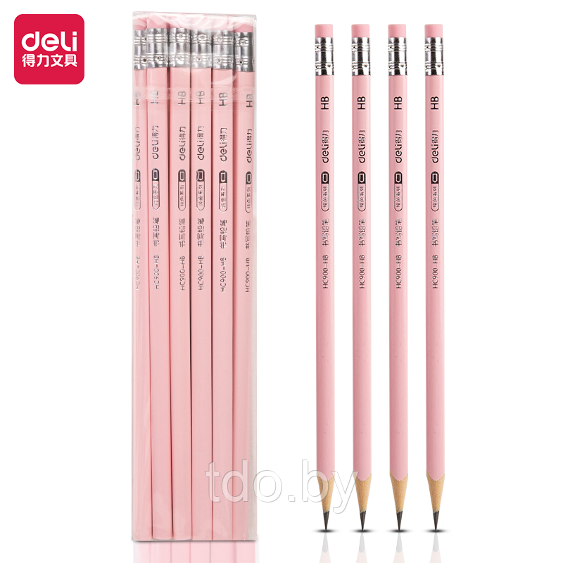 Карандаш чернографитный DELI, HB, трехгранный, не заточен, с ластиком, розовый корпус, деревянный