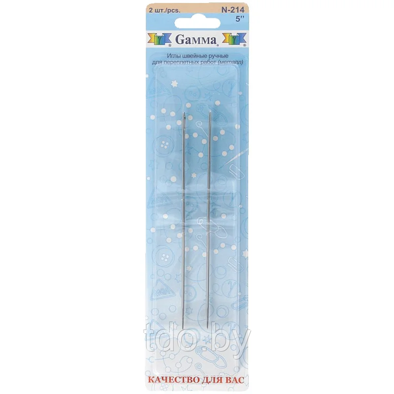 Иглы для ручного шитья GAMMA, N-214, 125 мм/1,83 мм, никелированная сталь, 2 шт, блистер с европодвесом