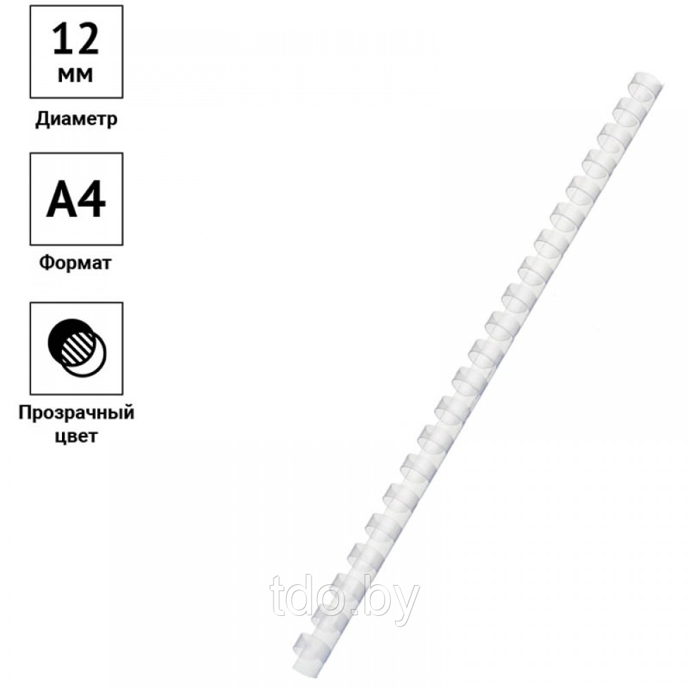 Пружины для переплета OfficeSpace, пластик, 12мм, прозрачн., 100шт/уп