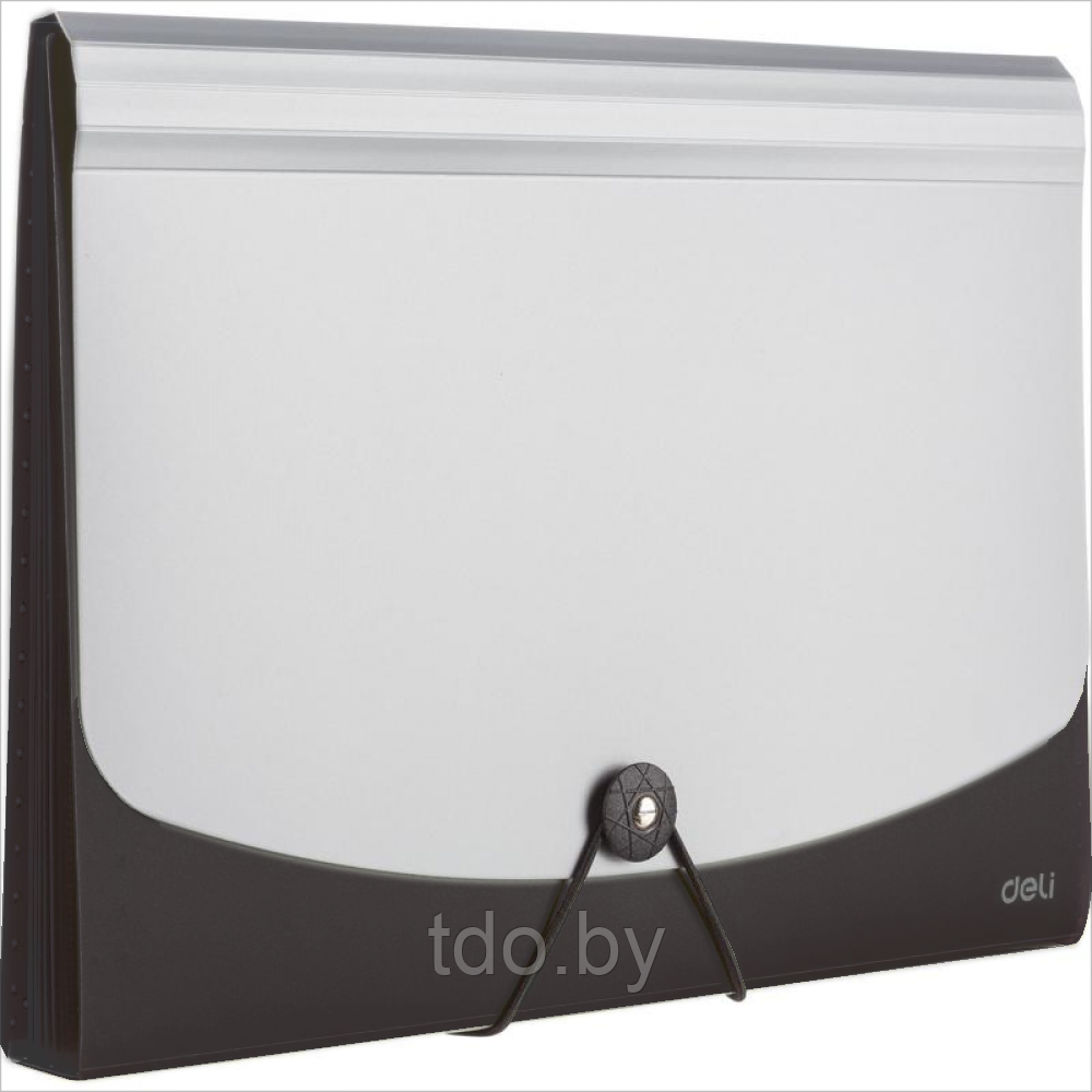 Папка-гармошка DELI NEW YORK, черно-серая, на резинке с пуговицей, 7 отделений, А4, 30 мм, 600 мкм, полипропил
