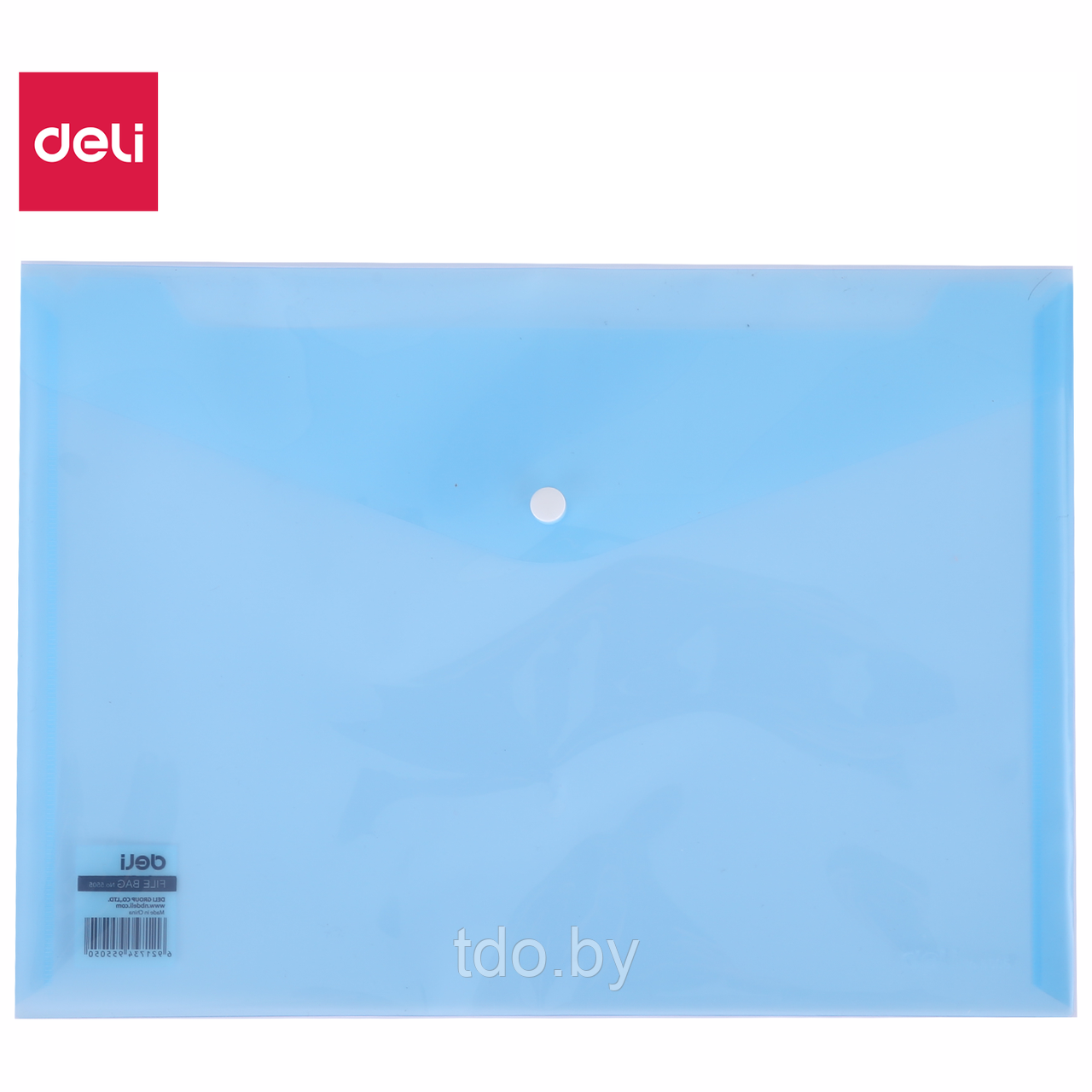 Папка-конверт на кнопке DELI AURORA, прозрачная голубая, А4, 160 мкм, пластик