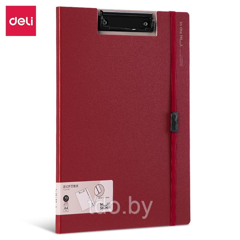 Папка-планшет DELI NUSIGN, красная, с верхним прижимом, А4, на резинке, пластик